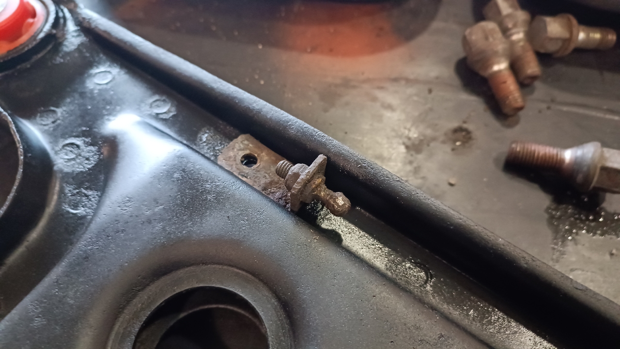 Czyli było dłubane przez poprzedniego właściciela. Na foto zdjęci ori elementu do cięgna czujnika. Przykręcony do wahacza.